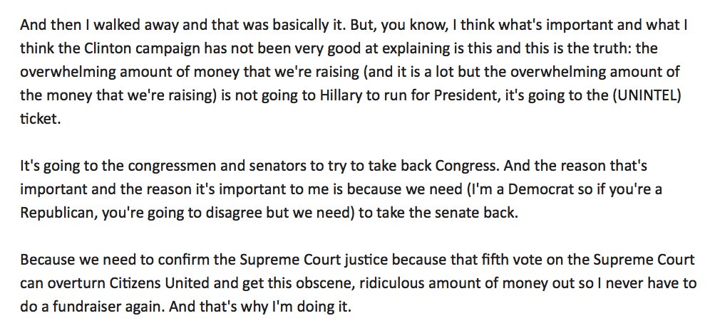 Here's what Clooney said after his riff on Sanders & campaign finance. MTP notably didn't release it last night: